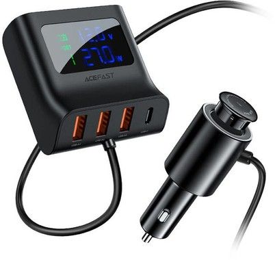 Produktet er udstyret med tre USB-A-porte og en USB-C-port, plus det har et langt kabel (90 cm), der gør det muligt for personer på bagsædet at oplade deres enheder. Opladerens effekt er 90 watt, fordelen er også dens brede kompatibilitet med hurtigopladningsprotokoller og LED-display.