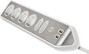 Brennenstuhl estilo Corner Extension Lead 6-vejs m/ USB er en kompakt strømudtag tilpasset hjørner lavet af meget brudsikkert plastik og en højkvalitets rustfri ståloverflade skaber orden i dit hjem.