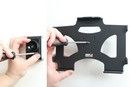 Holderen er monteret på en vippedrej og kan vinkles og drejes for at undgå refleksioner i skærmen. Du kan nemt skifte mellem stående og liggende tilstand ved at dreje holderen til den ønskede position. Det er let at sætte en iPad i holderen, og at tage den med, når du forlader bilen.