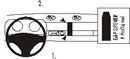1. Tryk den medfølgende spalteåbner ind i spalten ved 1 for at udvide afstanden. Rengør overfladen ved 1 og 2 med den medfølgende vådtørring. Fjern beskyttelsesplastikken på de to dobbeltsidede klæbebånd på ProClip holderen.