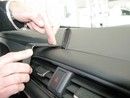 1. Tryk den medfølgende mellemrumsåbner ind mellem instrumentbrættet og det polstrede panel omkring luftventilerne for at udvide mellemrummet. Tryk den vinklede top af beslaget ind i mellemrummet ved siden af mellemrumsåbneren.