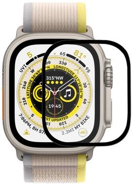 Skærmbeskytter i hærdet glas til Apple Watch Ultra. Glasset er omfattende og nemt at montere.
