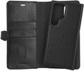 Det højkvalitets læder mobiltaske til Samsung Galaxy S24 Ultra har tre kortpladser og seddellomme. Den beskyttende magnetiske skal kan bruges separat.