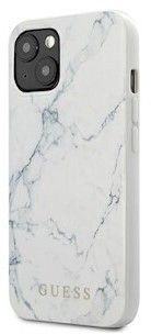 En hård skal i polycarbonat med marmormønster på bagsiden.