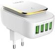 Du behøver ikke vente, indtil en enhed er fuldt opladet, før du tilslutter en anden. Opladeren giver dig mulighed for at bruge 4 USB-porte på samme tid! Vægopladeren tilbyder også en udgangsspænding på 4,4A, og takket være Auto-ID registrerer den på intelligent vis det tilsluttede udstyr og justerer dets drift efter dets krav.Praktisk natlys