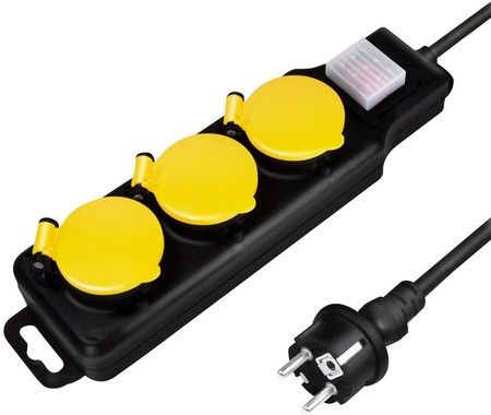 Grenstik med tre stik, en kabellængde på 1,5 m og oplyste kontakter. Velegnet til midlertidig brug i fugtige omgivelser og rum. Stikkene er jordforbundet, har trust til låg med låg og er også stænktætte. Grenstikket har en IP-klassificering på IP44, og produktet inkluderer også en bøjle til vægmontering.