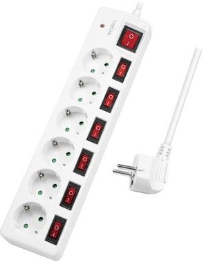 LogiLink 6-vejs LogiLink har plads til seks elektriske enheder på samme tid. Strømmen for hvert stik kan skiftes individuelt, da hvert stik har sin egen tændte / slukkontakt.