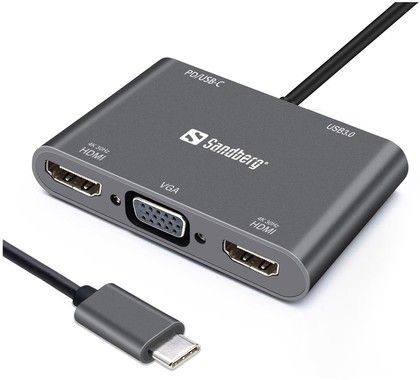 Med denne alsidige USB-C multi-screen dock kan du tilslutte to ekstra skærme med HDMI eller en skærm med HDMI og en med VGA.