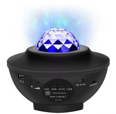 Skift stemningen i dit værelse med denne stjernelampe, så det føles som om du er oppe i atmosfæren. Du kan vælge mellem i alt 10 forskellige lysvarianter via fjernbetjeningen og desuden afspille din musik via bluetooth eller et TF-kort. Timer på 4 timer.
