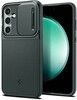 Spigen Optik Armor er en hård skal med integreret kamerabeskyttelse. Du kan trække kameracoveret over linserne, når du ikke bruger din Samsung Galaxy S23 FE for ekstra beskyttelse og privatliv.
