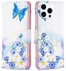 Et pung etui med et smukt mønster af blomster og sommerfugle. På indersiden er der to kortpladser og et seddelrum, og låget lukkes med en magnetisk klap.