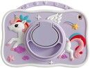 Børneetuiet har et sjovt design med en farverig enhjørning på bagsiden.