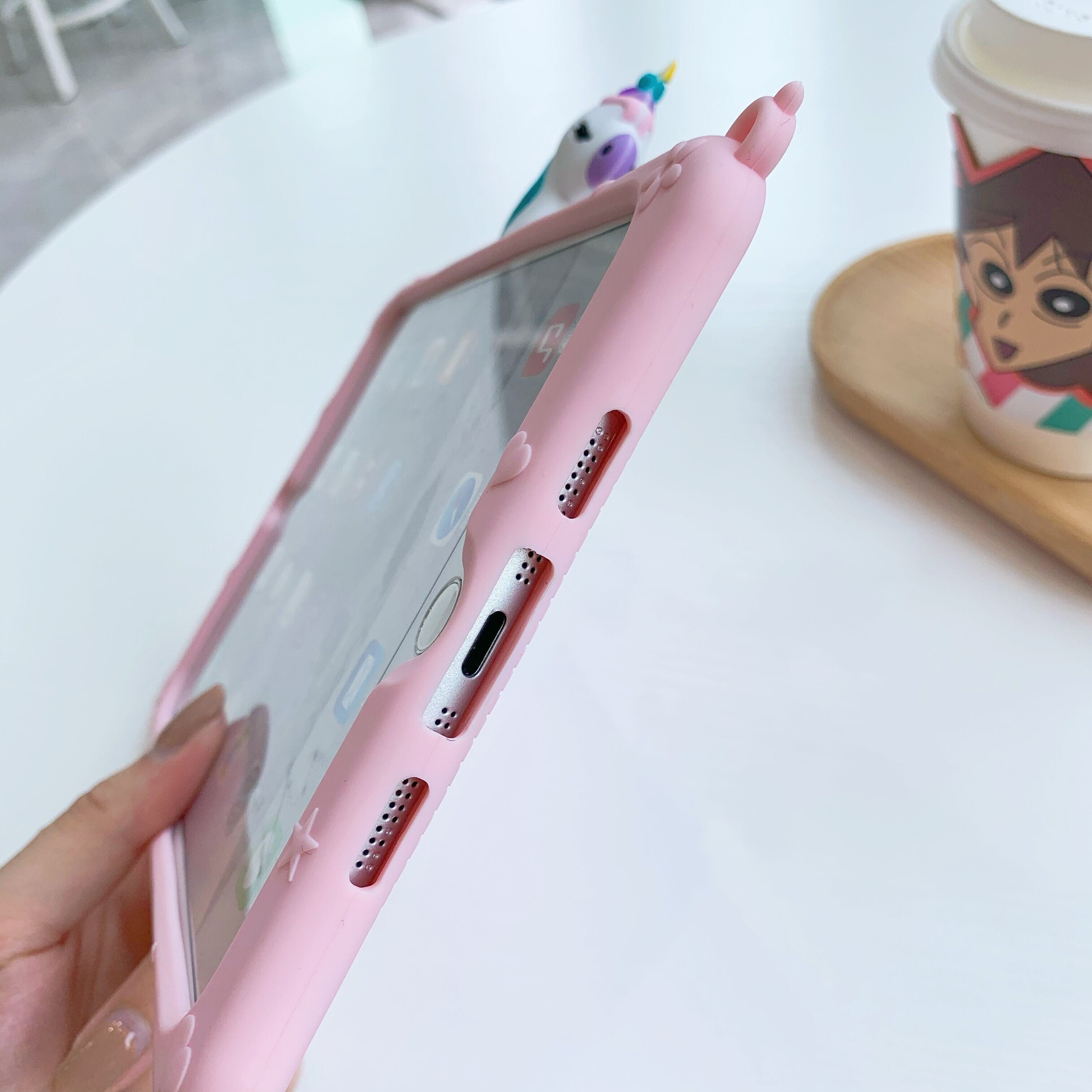 Blødt iPad 10.2 etui med en sød enhjørning på. Skallen er perfekt til børn og har en fleksibel bærerem.