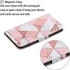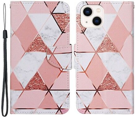 Et pungetui i imiteret læder med marmormønster og glitter. Coveret passer til iPhone 15 og beskytter din enhed mod ridser, snavs og stød.