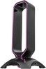RGB-headsetstativ med belysning og to USB-A-porte.