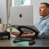 Hæv stativet op til 55 centimeter for videoopkald i øjenhøjde eller for at tilpasse din MacBook med en ekstern skærm. Når du skal flytte, skal du bare folde Flex og lægge den i den medfølgende taske.