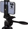 Lille fleksibelt stativ fra Velbon med en foldet længde på 43,5 cm og en maksimal længde på 123 cm. Stativet leveres med et pan-and-tilt-hoved og en smartphoneholder . Hovedet giver jævn 360-graders bevægelse og håndtering, og det er let at skifte til portrættilstand.